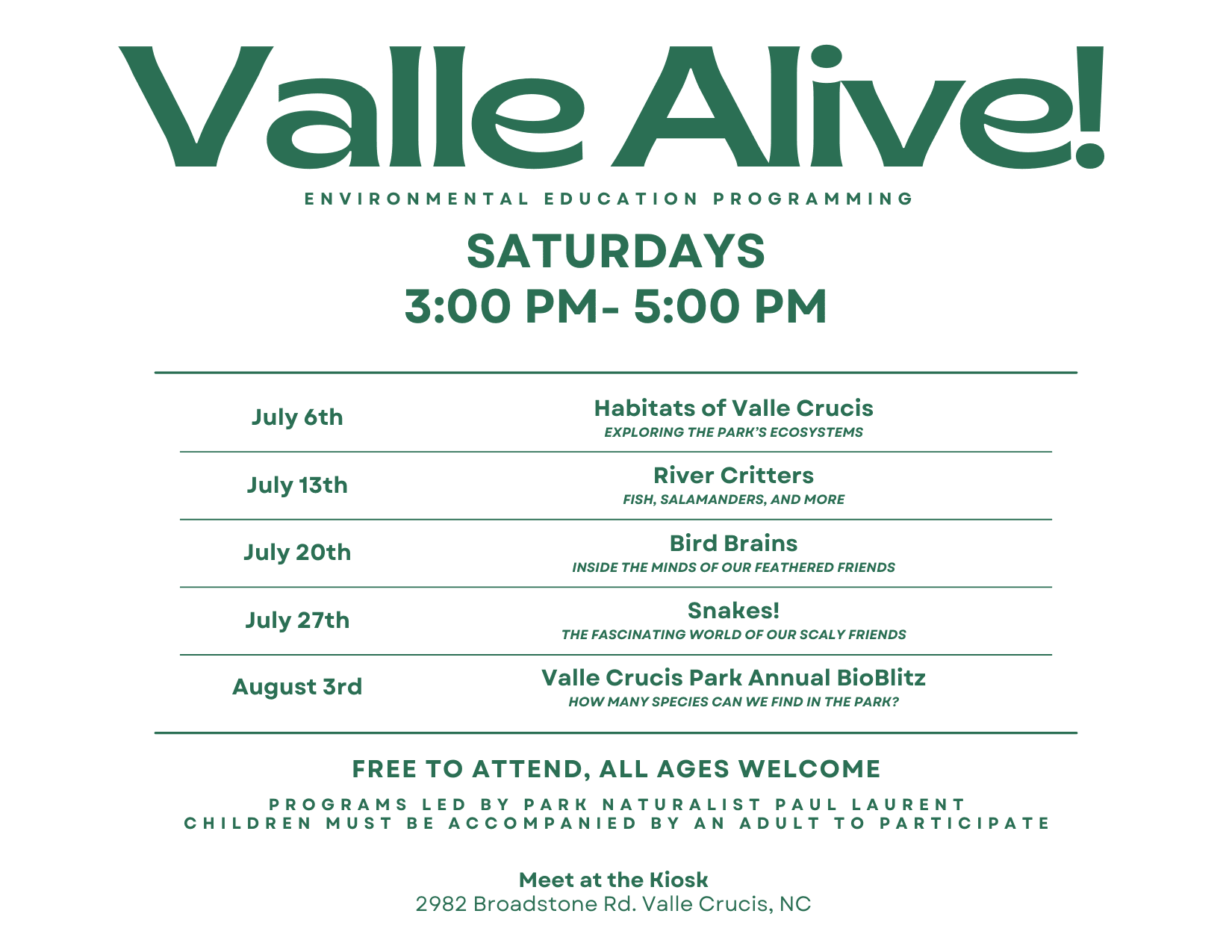 Valle Alive! 2024 Schedule