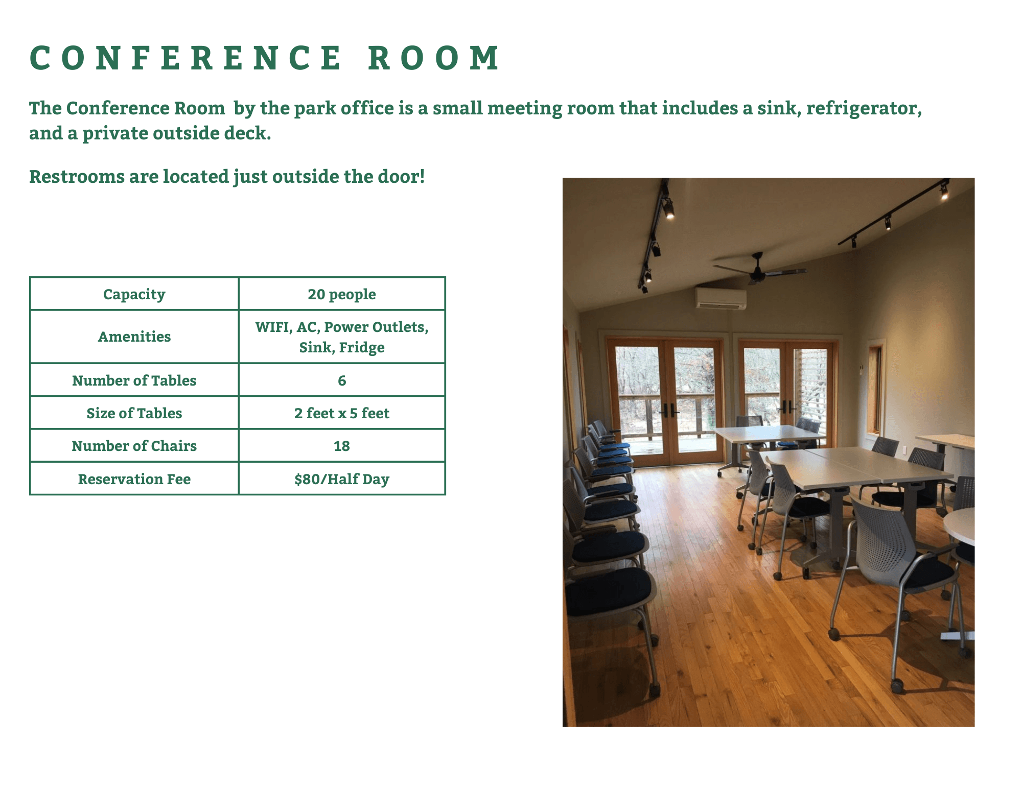 See below for more information on renting a facility for your meeting, picnic lunch, party, or family reunion!